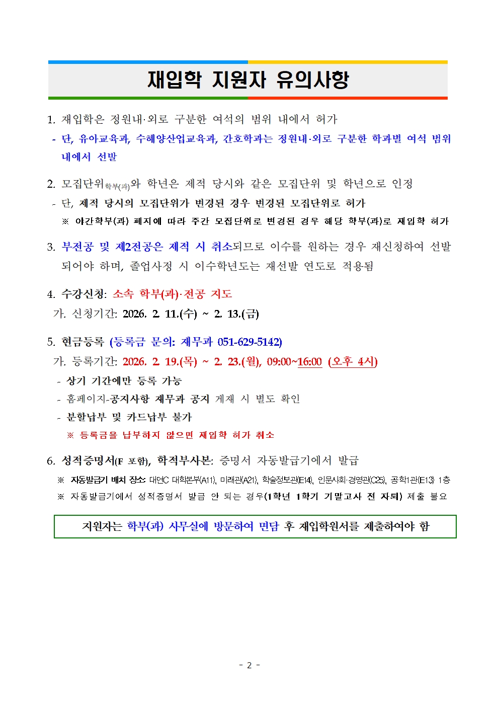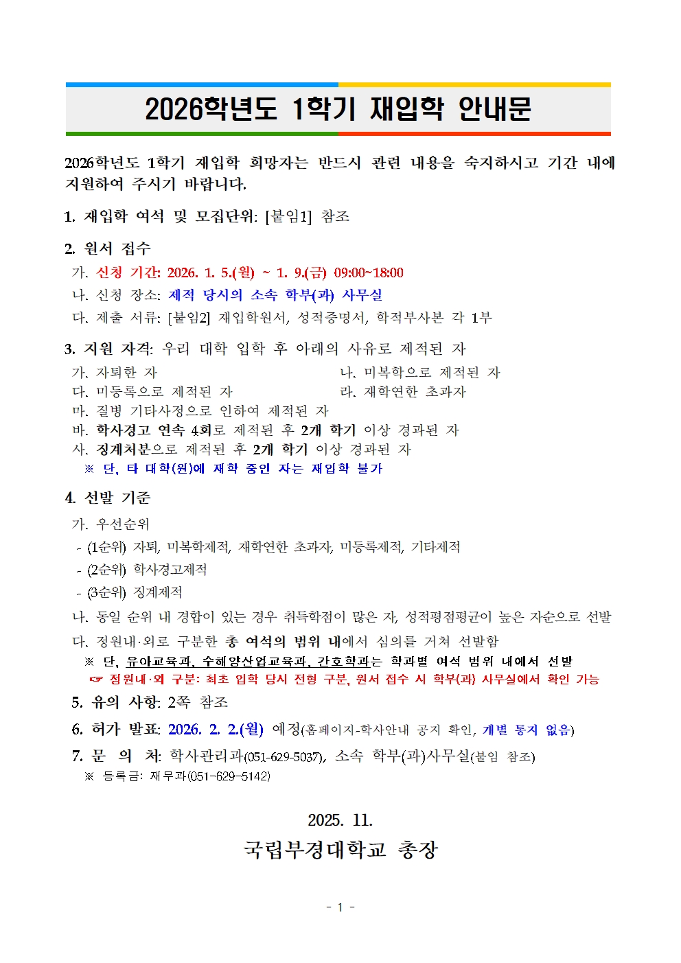 | 2026학년도 1학기 재입학 실시 계획 알림 | |||