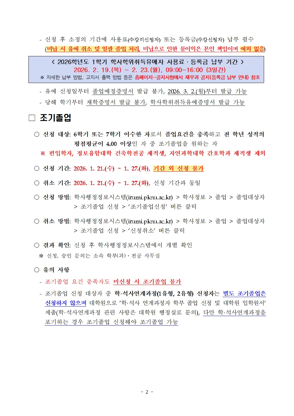 | 2026년 2월 학사학위취득유예 및 조기졸업 계획 알림 | |||