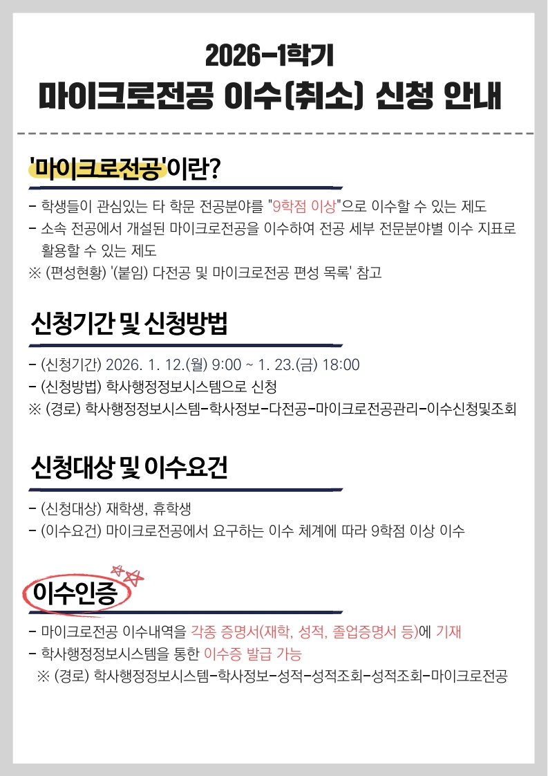 | 2026학년도 1학기 다전공 등 이수(취소) 신청 안내 | |||
