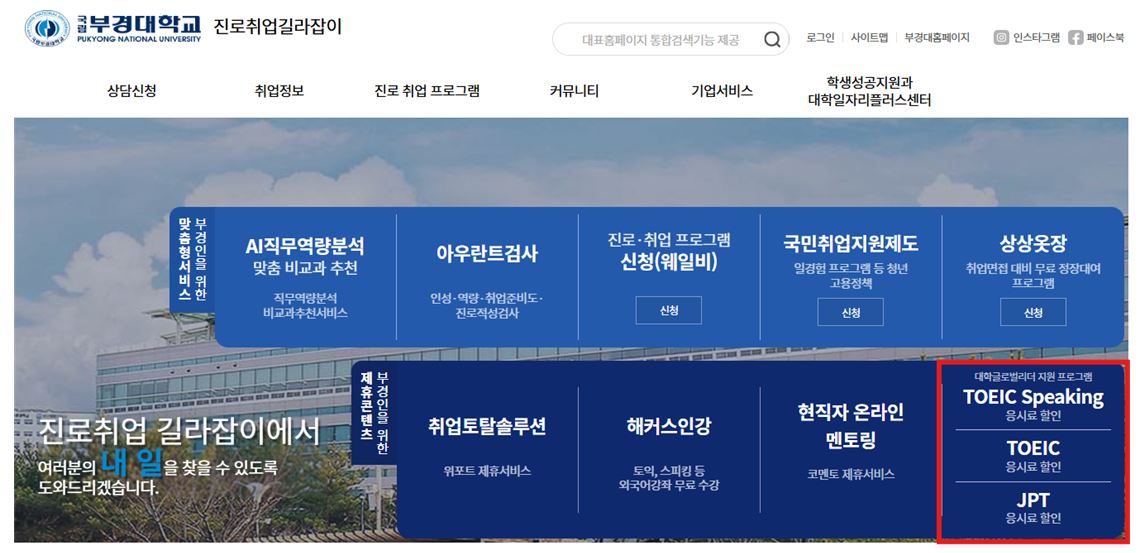 국립부경대학교 재학생 TOEIC, Toeic Speaking, JPT 정기시험 특별 할인
